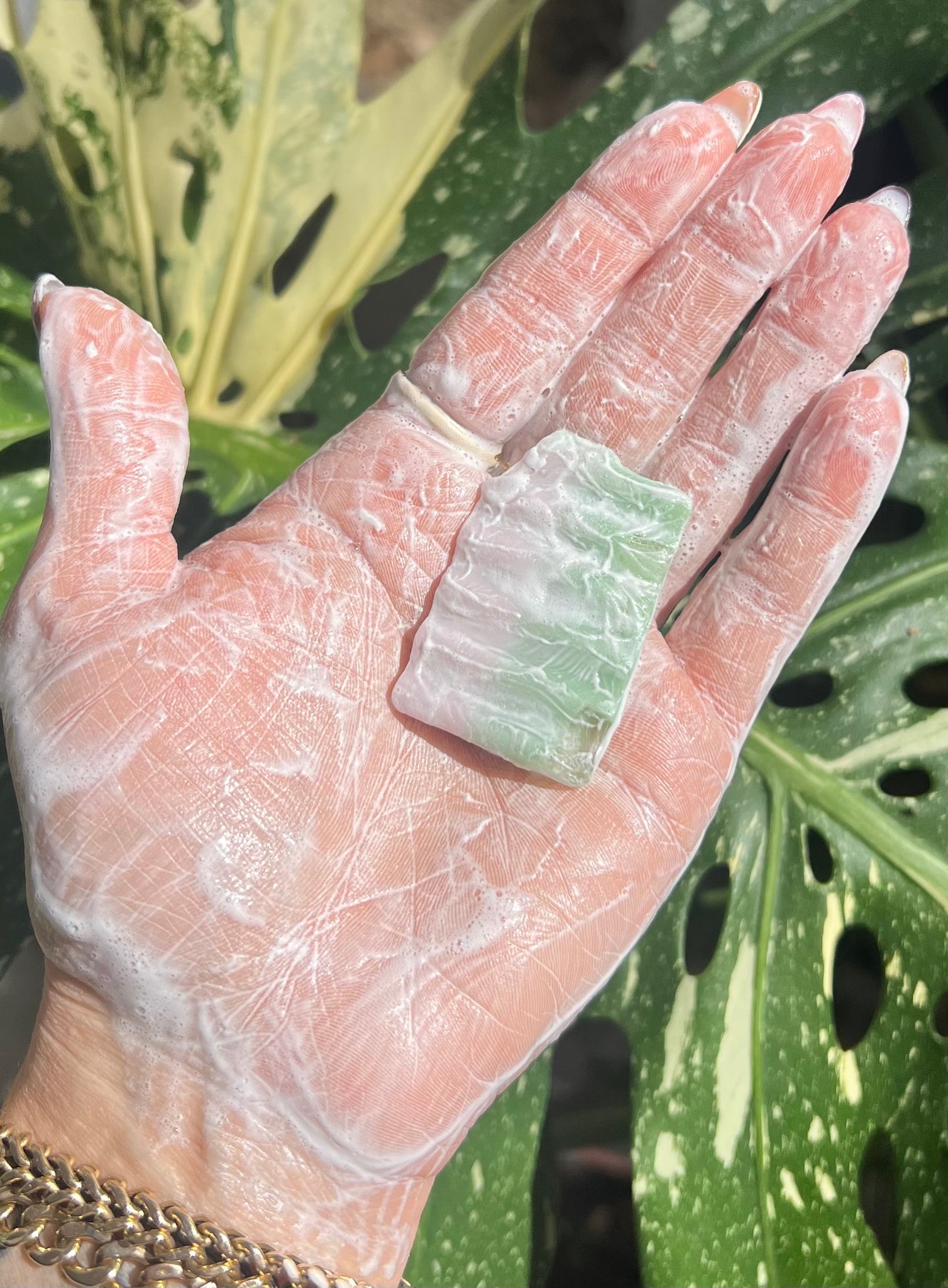~Blooming Jasmine 🧼 This handcrafted soap bar captures the intoxicating, heady scent of night-blooming jasmine, balanced with subtle green notes to keep it fresh and sophisticated.